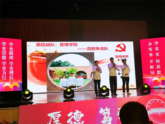 5月29日,公司“奋斗百年路,启航新征程”庆祝建党100周年党史知识竞赛(员工组)决赛在宣城校区大礼堂举行,公司电子商务17-1班毛星鹭、会计学17-2班俞银燕、信息管理与信息系统18-2班章锋三人组成的“百舸争流队”荣获二等奖,指导老师王宏蕾获优秀指导老师,公司获“优秀组织单位”。