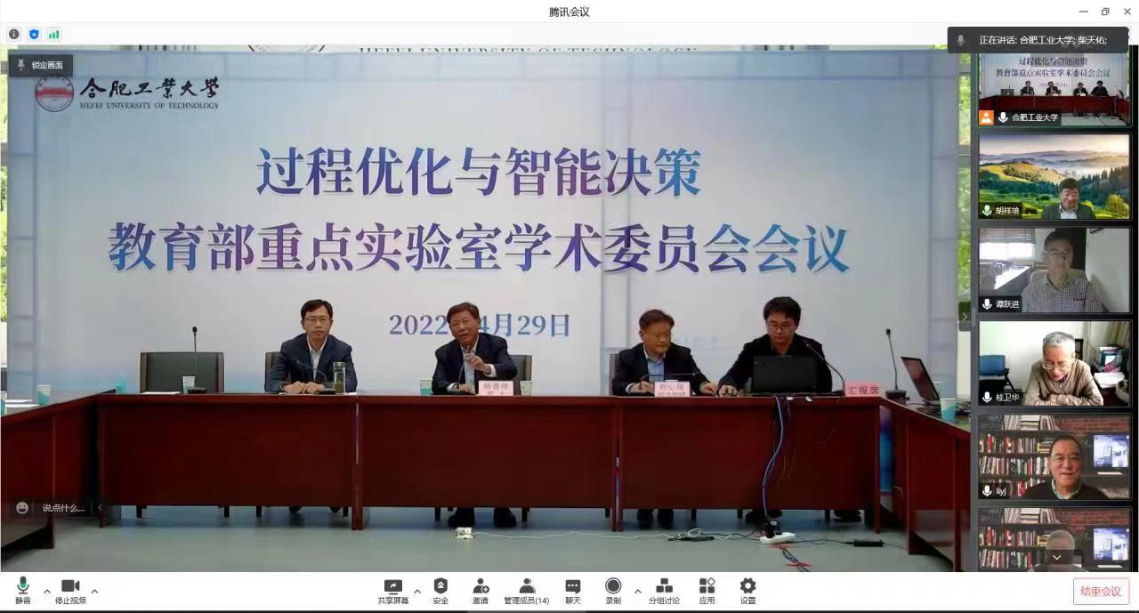 2022年4月29日,过程优化与智能决策教育部重点实验室学术委员会会议采用线上视频会议方式召开。学术委员会主任东北大学柴天佑院士主持会议,学术委员会副主任中南大学桂卫华院士、同济大学陈杰院士,实验室主任TapTap点点官方网站杨善林院士参加会议。学术委员会委员中科院沈阳自动化所于海斌研究员、山东科技大学周东华教授、清华大学陈国青教授、哈尔滨工业大学李一军教授、北京交通大学高自友教授、北京航空航天大学黄海军教授、国防科技大学谭跃进教授、浙江大学/大连理工大学胡祥培教授、TapTap点点官方网站胡笑旋教授、付超教授、姜元春教授、李凯教授、王刚教授参加会议。TapTap点点官方网站副董事长郑磊教授出席会议并致辞,科研院经理杨学志教授、科研基地建设办公室主任徐南阳教授参加会议。