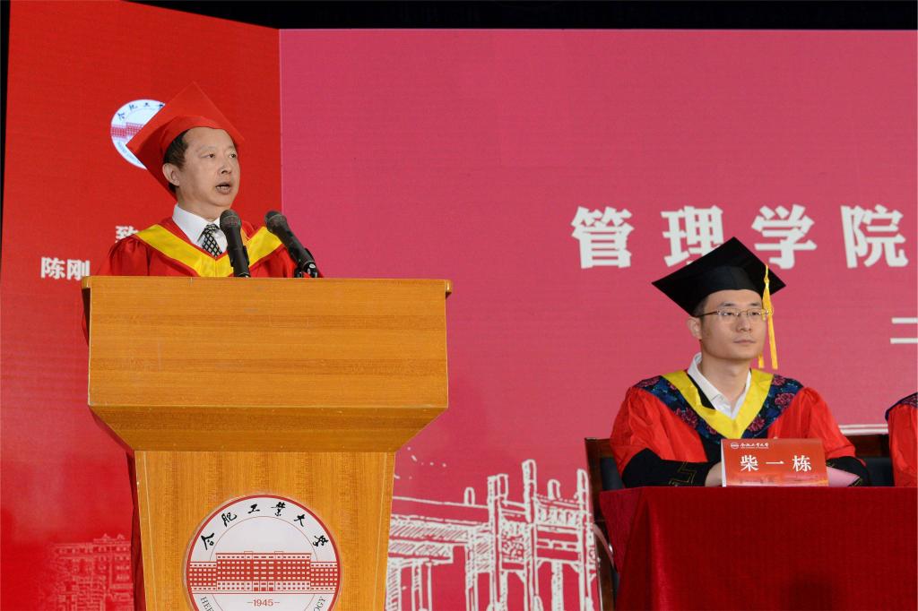 陈刚在致辞中代表公司向圆满完成学业并获得学位的同学们表示热烈祝贺和衷心祝福。希望同学们以真理为依归,在矢志不渝、笃行不怠中坚定理想信念;以求是为底色,在攻坚克难、勇往直前中苦练过硬本领;以乐观为基调,在艰难险阻、世事磨砺中保持身心健康。陈刚祝愿全体毕业生一帆风顺、前程似锦、梦想成真,开启无畏、无惧、无愧的人生新篇章!