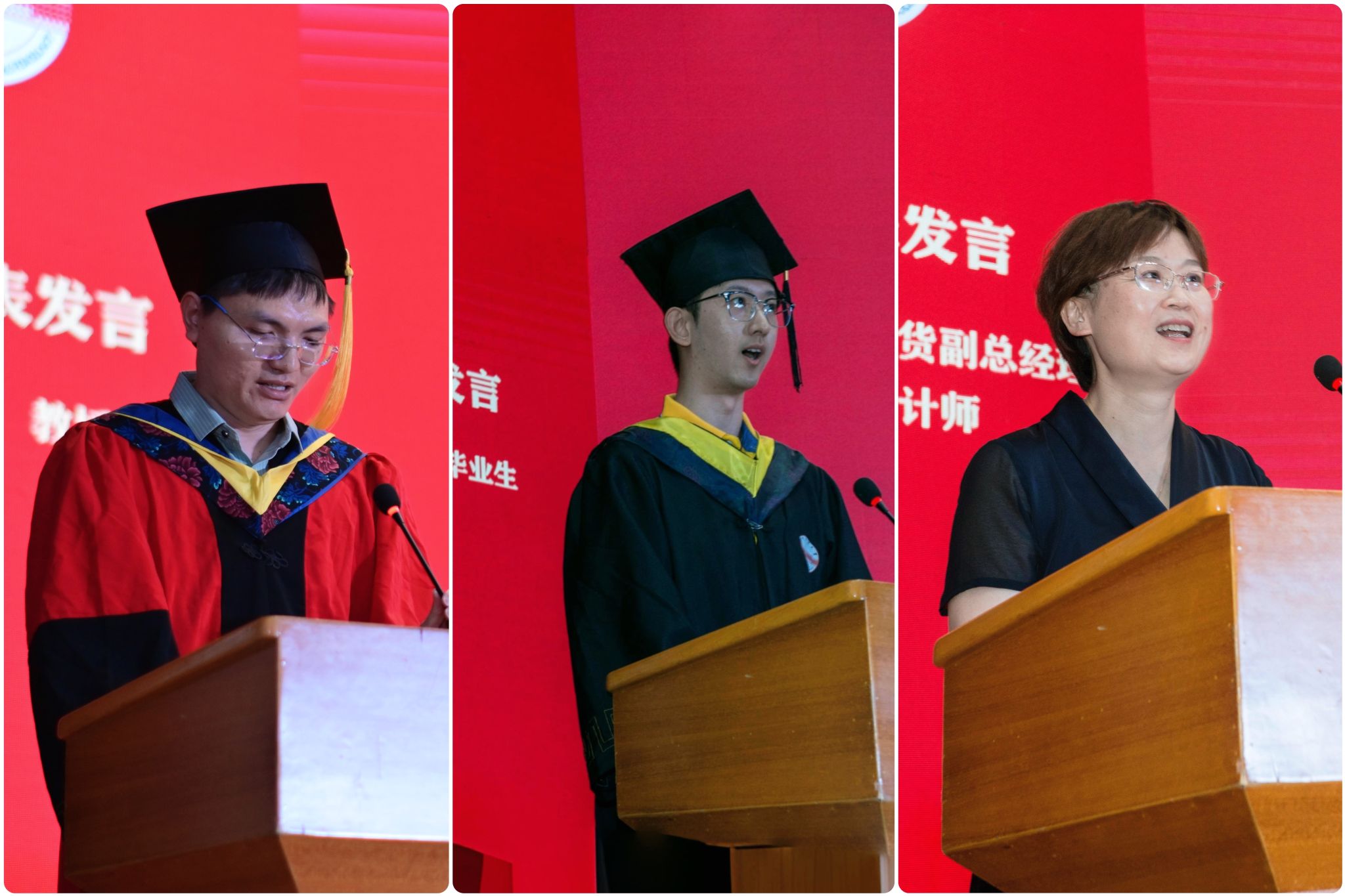教师代表魏少波向毕业生表示祝贺,并以“感恩之心”“担当之责”“学习之志”三个关键词送上最诚挚的祝福。徐翼豪代表毕业生感恩公司、老师的培养和同学的陪伴,号召同学们怀抱一颗报效祖国的赤诚之心,不惧风雨、勇于奋斗。员工代表张存芳回顾了自己的老员工活,分享了个人成长的感悟,激励毕业生保持一颗谦逊的心态,持续学习和成长,祝福毕业生们拥有从容酣畅、幸福温暖的人生。