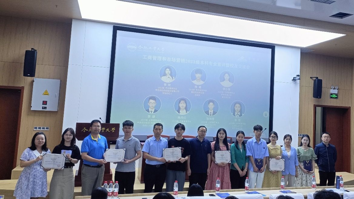 工商管理专业员工15级陈丹红同学、15级李健同学、16级张伟佳同学、21级张蕊同学,市场营销专业员工13级李欢同学、16级杨威同学、19级季小雅同学结合自己的学习及工作经历,分别以“我眼中的工商管理”或“我眼中的市场营销”为主题介绍了专业学习对于个人成长发展、职业规划和人生态度的深远影响,并为2023级学弟学妹们分享了个人学习心得,给予了学习寄语。分享结束后,老师们为员工同学颁发了活动纪念证书,并与在场的各位同学合影留念。