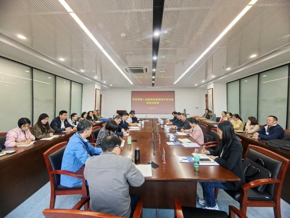 巡察组副组长李军鹏、郑召丽及巡察组全体成员,公司领导班子成员、各系(部)负责人、党支部书记、科级干部、教师和员工代表、离退休人员代表等参加会议。