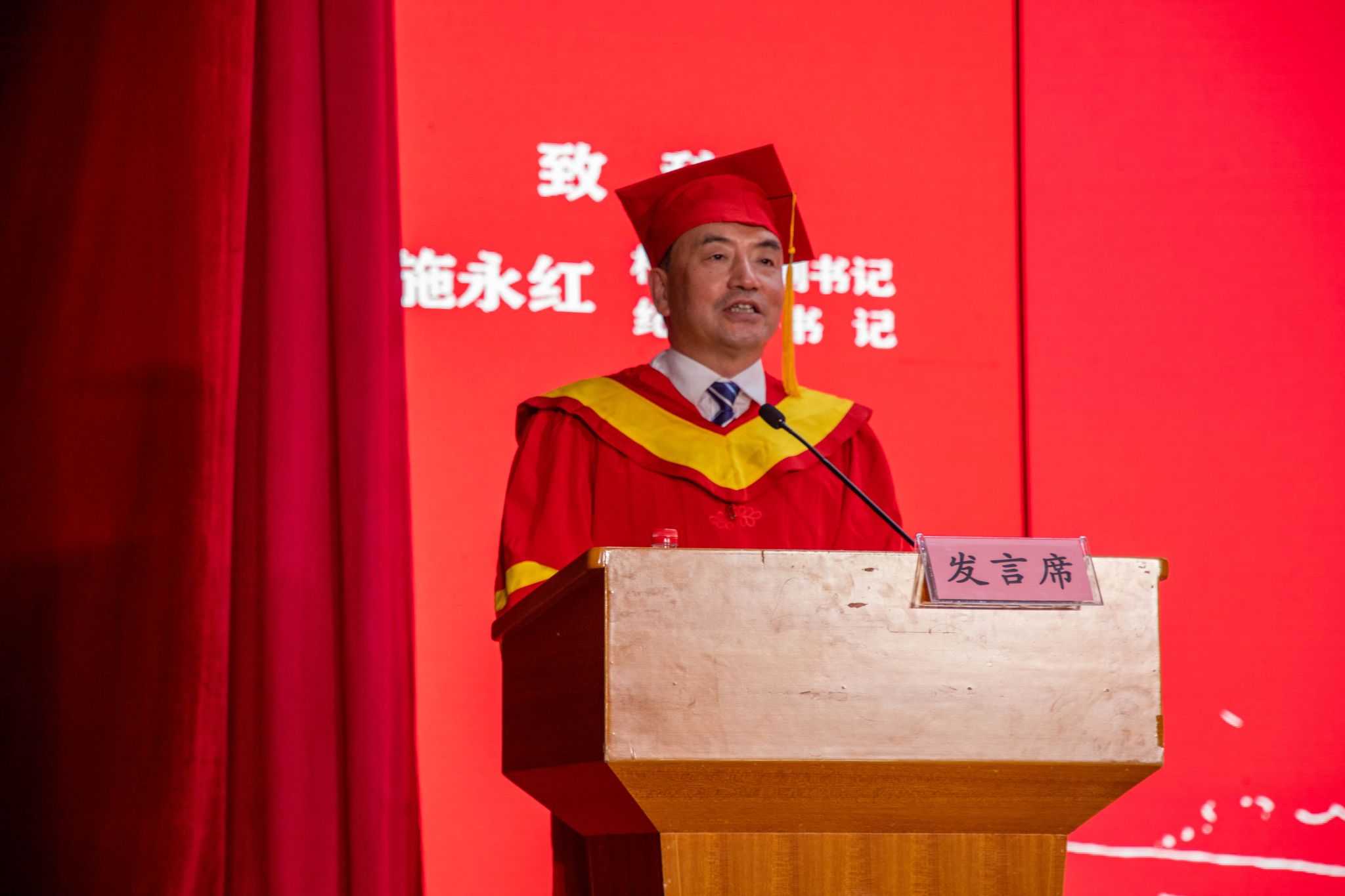 施永红在致辞中代表公司向圆满完成学业并获得学位的同学们表示热烈祝贺和衷心祝福。他希望同学们厚德修身、笃学不怠,做自信自强的工大人;挺膺担当、砥砺前行,做报国强国的奋斗者;追求卓越、勇攀高峰,做创新创造的排头兵。他衷心祝愿毕业生们以昂扬奋发的青春朝气、舍我其谁的青春锐气、坚毅果敢的青春正气,勇立潮头,奋楫争先,用智慧和汗水谱写新时代新征程的青春之歌。