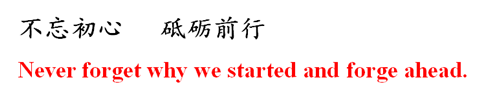 (1) 这句话的意思是“不忘初心,牢记使命”,来自习近平总书记在2017年10月18日星期三上午在中国共产党第十九次全国代表大会开幕式上报告的英文版(The English version of 19th National Congress of the Communist Party of China opened on Wednesday, delivered by Chinese President Xi Jin-ping)。“不忘初心,方得始终”的官方翻译是“Never forget why you started, and your mission can be accomplished.”。