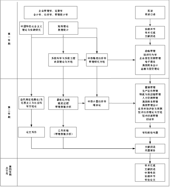 战略管理/营销管理/生产运作管理/组织行为学/人力资源管理/企业信息资源管理/物流与供应链管理/电子商务/高级财务会计/高级财务管理/高级管理会计/金融与投资理论/证券市场评估与预测/技术经济理论与方法/技术创新管理/创业学 |