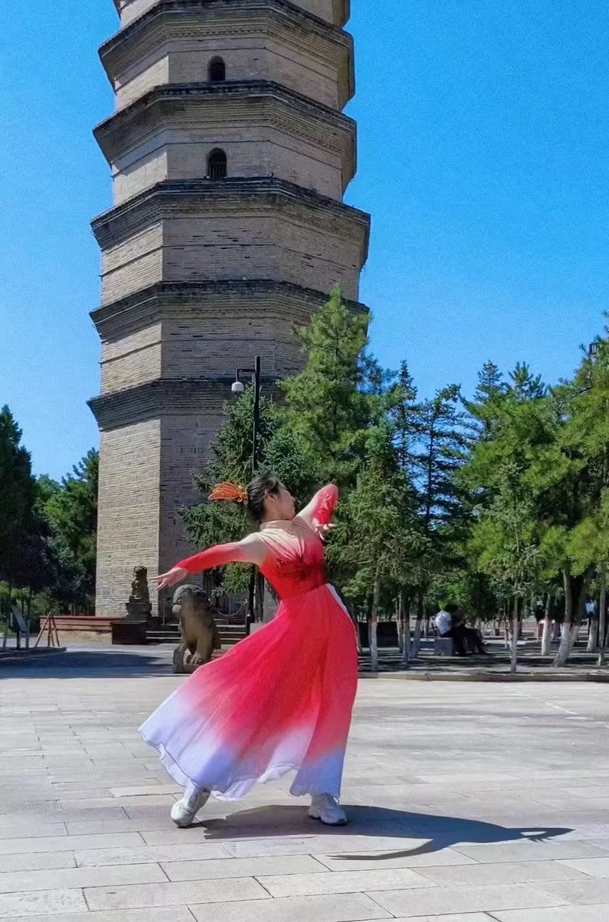 嘉岭葱茏碧水流,巍巍宝塔定延州。延安第一站我们来到了宝塔山。位于宝塔山上的延安宝塔(岭山寺塔)是中国的革命精神标识,1937年1月,中共中央和毛主席进驻延安,这座古塔也焕发了青春,成为引领中国革命走向胜利的“熊熊火炬”和“航标灯”。团队成员在宝塔山下翩翩起舞,用舞蹈诉说对于伟大革命的敬畏,迎接党的二十大。“几回回梦里回延安,双手搂定宝塔山”,一首《回延安》凝聚着人们对于宝塔山的无限向往和深深的眷恋,我们在宝塔山下深情朗诵《回延安》,歌颂延安精神。