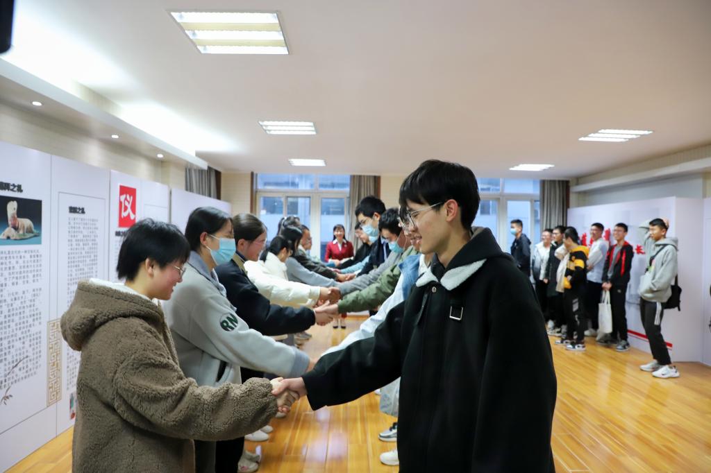 为加深同学们对于礼仪规范的理解和掌握,特别设计了沉浸式体验环节,同学们参观了“蕴文尚美”礼仪长廊,纵观礼仪的发展脉络,了解感悟古今礼仪之美。蔡正兰教授带领同学们分专题进行了情景扮演和角色模拟,同学现场体验握手、交换名片等职场礼仪的细节,现场气氛活跃热烈。