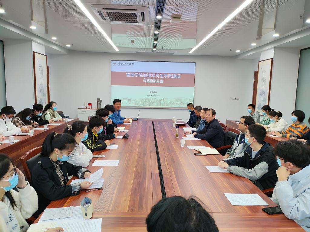 本次座谈会旨在激发管理学子遵规守纪,明礼守信,砥砺成才的自觉性、自律性、主观能动性,切实解决各年级员工在日常学习过程中遇到的困难和问题,共同创建“学在管院”的浓厚学风氛围,鼓励管理学子将勤奋学习当作青春远航的动力,将增长本领当作青春搏击的力量,书写人生华章。