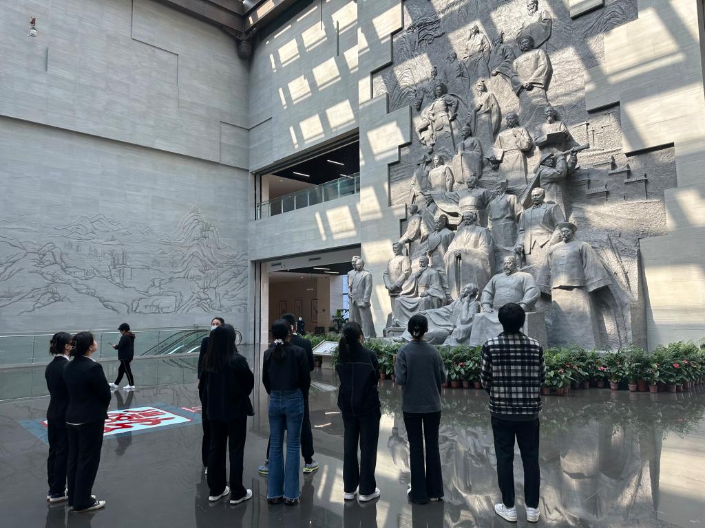 安徽名人馆是全国首个省籍历史名人专题纪念馆。展馆以史为纲,以时为序,从古至今由八大展厅组成。在讲解员的带领下,学员们从陈列28位安徽籍名人的巨型浮雕的序厅出发,了解名人们的光荣历史事迹,感受名人的智慧和不朽的奋斗精神。随后学员们依次参观了安徽省名人馆的八大展厅,深入了解安徽历史文化中对国家民族发展和安徽地方事业做出重大贡献的历史人物。参观完毕后,同学们在名人馆外进行了庄严的入党宣誓仪式。