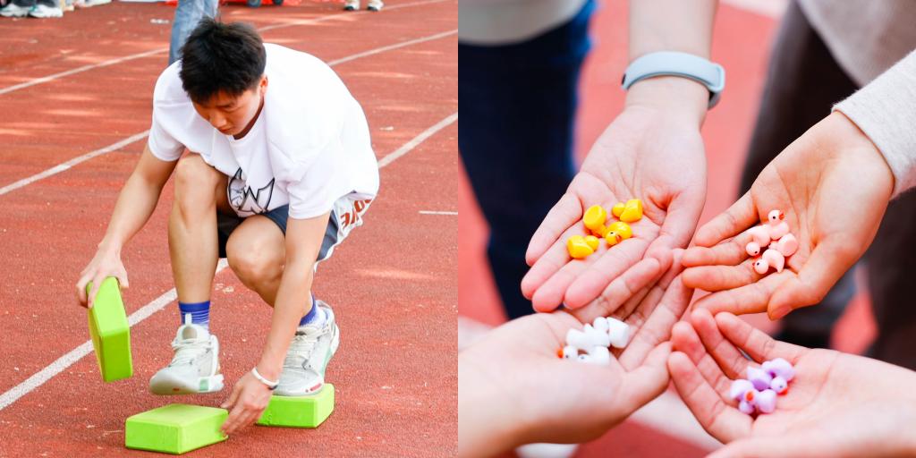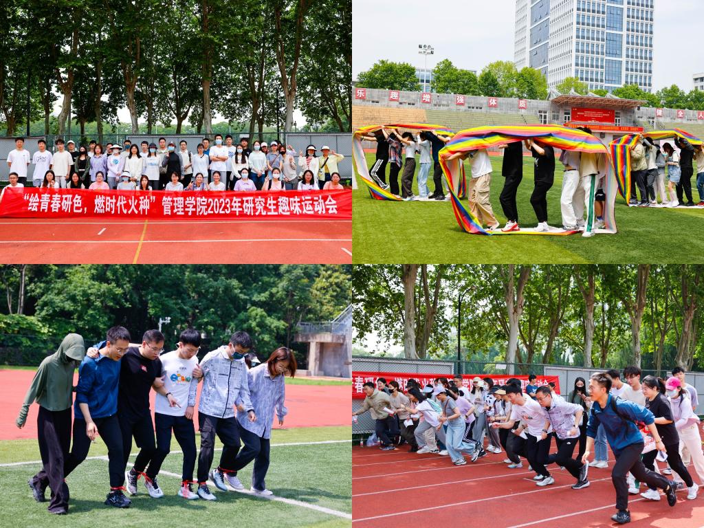 本届研究生趣味运动会共设立6个项目,比赛采取团体赛、积分制。首先,以“管理学知识大比拼”项目火热暖场,参赛成员围绕“战鼓”抢答管理学问题,开动脑筋,沉着应对。接着是“摸石过河”“踩气球”“筷子夹乒乓球”“两人三足跑”“无敌风火轮”等项目,大家争分夺秒、竞争激烈,分工明确、配合默契。在阳光明媚的操场上,同学们激发了昂扬向上的青春活力,焕发了齐头并进的体育风采,彰显了顽强拼搏的精神风貌。