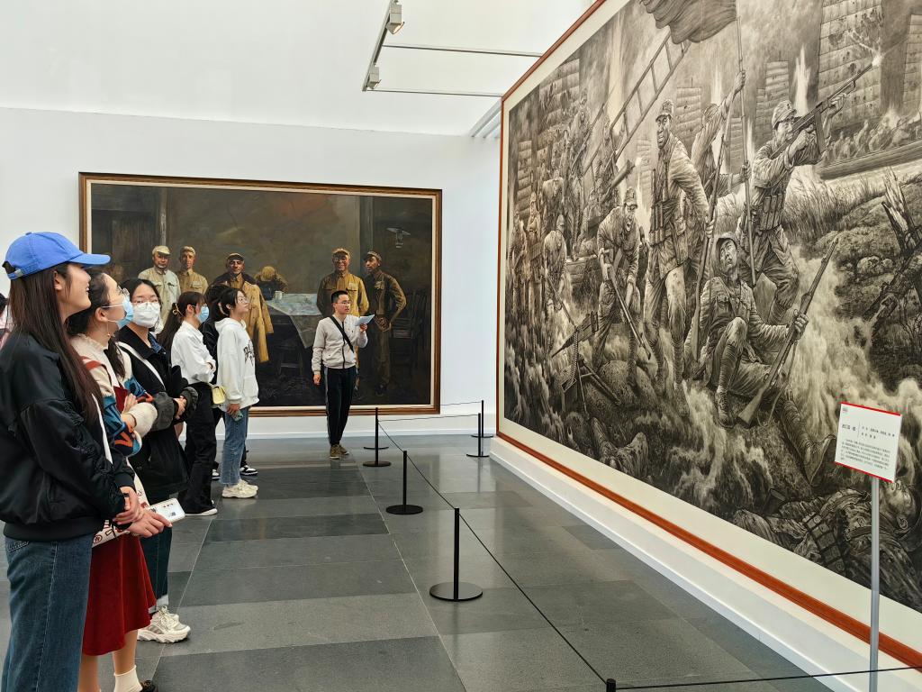 本次活动重点参观了“安徽省重大历史题材美术作品展”,作品以美术的形式记录和反映安徽波澜壮阔的历史,描绘出一幅幅壮美画卷,体现出艺术家呼应民族精神、呼应时代进程的精妙构思和家国情怀。在展厅中TapTap点点本科生第二党支部书记吕世安同学讲解了“渡江特等英雄”马毛姐的故事以及“渡江第一船”的来源,带领员工党员们身临其境感受党史故事,传承红色基因,赓续奋斗精神。