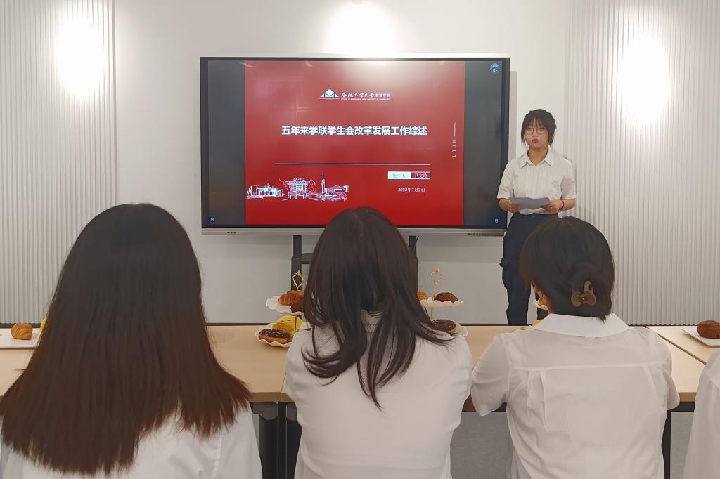 员工会主席团成员尹文玲同学带领学习五年来学联员工会改革发展工作综述:在以习近平同志为核心的党中央的亲切关怀和坚强领导下,5年来,各级学联员工会组织深入贯彻习近平总书记关于青年工作的重要思想,主动融入共青团改革整体部署,以刀刃向内的勇气自我革命,政治方向更加坚定、服务同学更加聚焦、大局贡献更加凸显。