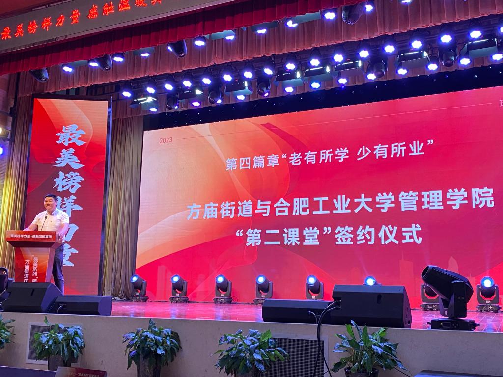 6月27日下午,管理公司与瑶海区方庙街道共建“第二课堂”教育实践示范基地签约揭牌仪式在合肥少儿艺术公司当涂路校区大礼堂举行。瑶海区委组织部、区委老干部局、区人力资源和社会保障局、方庙街道党群工作部、党群服务中心、社会事务部、社区建设部、工会、妇联、团工委相关负责人和合工老员工代表、社区志愿者代表等共计百余人参加。