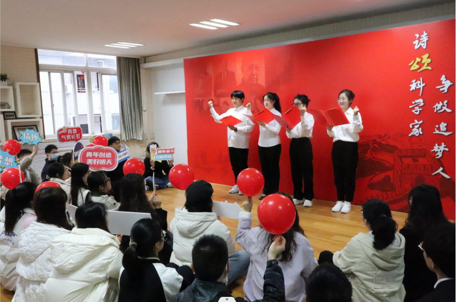 活动开始,TapTap点点第70期发展对象班班主任李星首先倾情诵读了《祖国高于一切——献给黄大年》,她用铿锵有力的声音向一生许国的科学家黄大年致敬,引发同学们感悟黄大年心有大我、至诚报国的爱国情怀。随后,同学们分小组诵读展示了《喜马拉雅山,一个巨大的惊叹号——献给刘东生院士》《要抛,就抛出中国科学家的志气——献给赵九章院士》《在历史的反光镜中,你看到了科学家的使命——献给王大珩院士》等5篇文章。同学们时而激情豪迈、字字铿锵,时而婉转抒情、娓娓道来,向每个为了科研而坚守的科学家表达内心的崇敬之情。活动结束后,同学们纷纷表示要继承发扬科学家院士们以国家民族命运为己任的爱国主义精神,要自觉把人生理想、个人追求融入到国家前途、民族命运和时代需要之中。