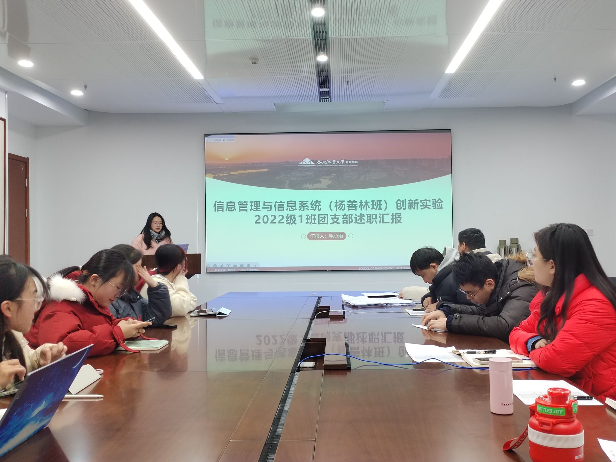 述职评议会上,公司团委书记田文祥向各班级团支部书记阐述了举办此次述职评议的目的和意义,公司本科生和研究生共37个团支部书记根据《团(总)支部“对标定级” 工作指引(4.0 版 2023 年修订)》,围绕支部建设、团员管理、组织生活、制度落实、作用发挥、未来工作展望等方面依次汇报。其中,大数据管理与应用21-1班团支部班子建设健全、团员管理规范、制度落实完善、在支部活动过程中积极发挥先进模范作用表现突出;信息管理与信息系统22-1班团支部将团支部工作与专业学习深度结合,将团支部建设比拟为信息管理系统开发工作,从系统的规划分析、开发设计、实施过程、运行维护和客户体验几方面来介绍团支部建设与作用发挥,创新感足、内容丰富。与会老师根据团支部自评情况逐一提问并给出意见或建议,公司团委书记田文祥、团委副书记黄倩分别对此次团支部“对标定级”暨团支部书记述职评议会进行总结。