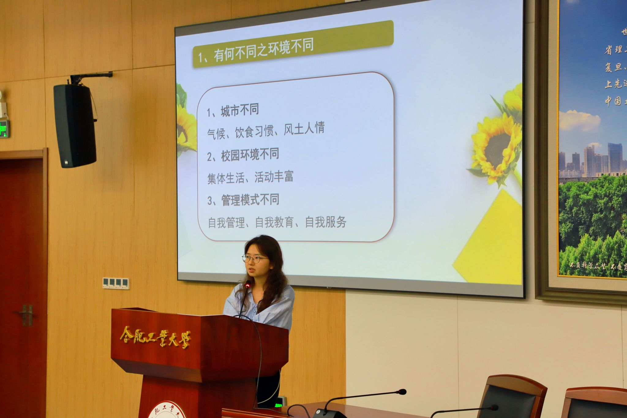2024级本科生辅导员方瑶以“调整心态,尽早适应,快乐学习,健康生活”为主题,开展了“新生心理适应”专题讲座。她围绕老员工活特点、挑战与机遇、适应方式等内容,引导新生积极适应老员工活、快速调整心态、快乐学习、健康生活、积极利用心理资源。