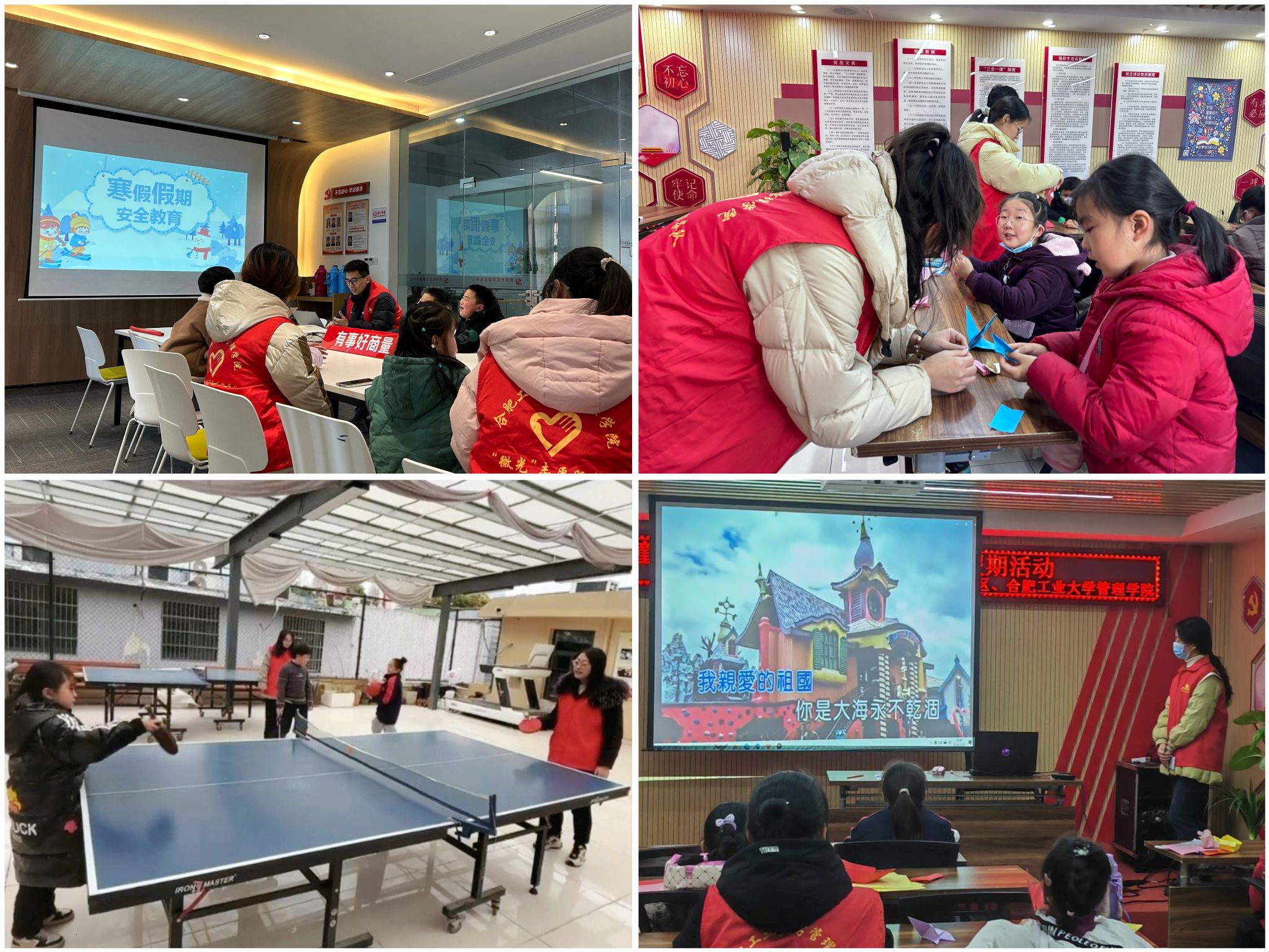 活动涵盖思想引领、身心成长、快乐学习、艺术素养、素质拓展等内容,包括主题宣讲、手工制作、红歌演唱、体育锻炼、年味绘画等形式,让孩子们在学中玩、玩中乐,充分利用寒假时间拓宽视野。在寒假安全宣讲中,科普防诈、防火防电、饮食、交通安全小知识;在妙手生花折纸课程中,锻炼动手能力,培养生活情趣;在声声红歌赞华夏课程中,增强员工乐感,激发爱国情怀;在运动健康小课堂中,加强身体素质,培养合作精神;在品味中国年绘画课程中,提高艺术修养,感悟传统文化。利用形式多样的实践活动,丰富孩子们的精神文化生活,进一步促进青少年综合素质提升。