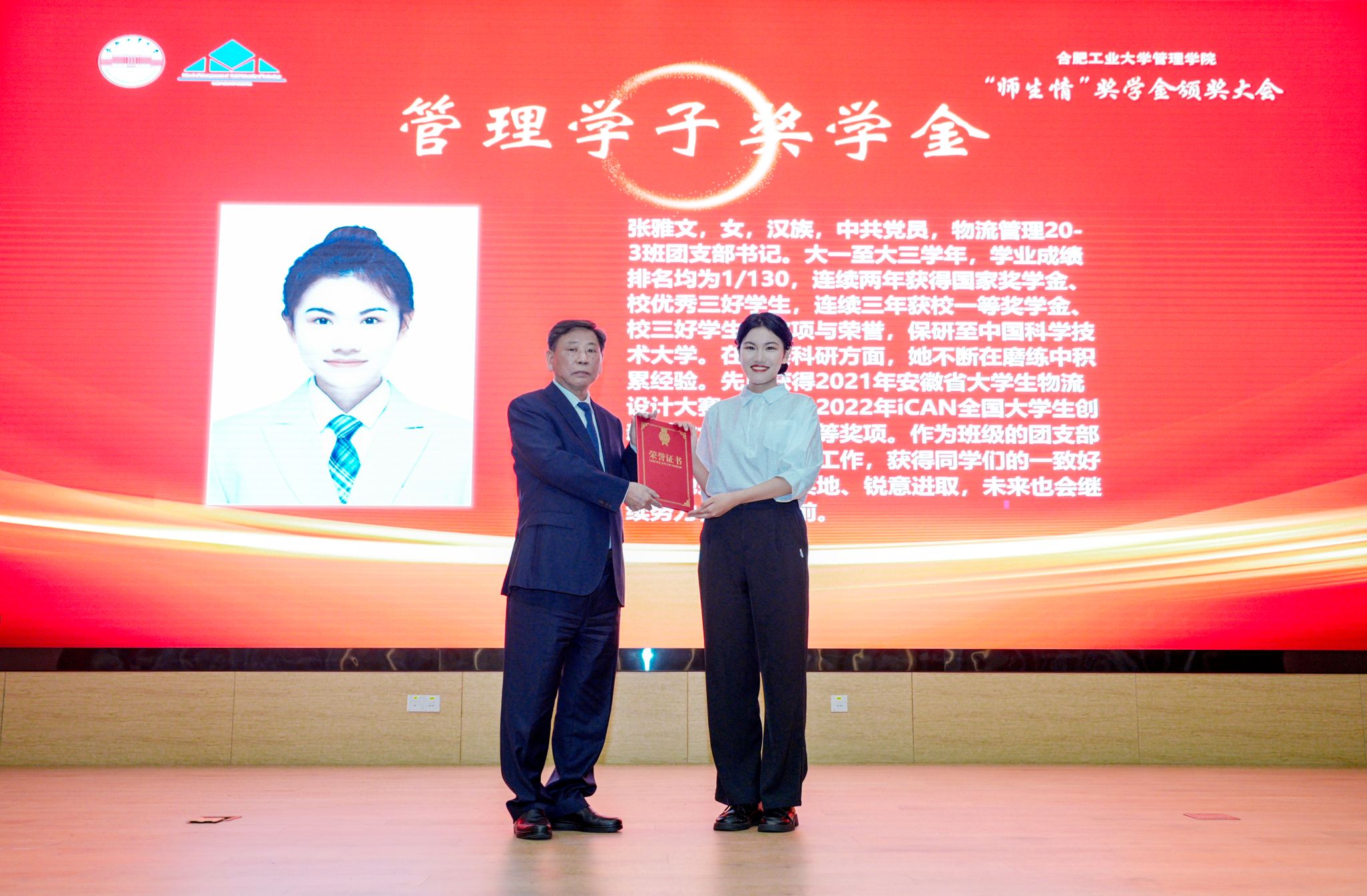 “管理学子”奖学金获得者、物流管理20-3班张雅文代表获奖员工发言。师生朗诵《江山和文明》、校园歌曲《光阴的故事》展现了师生间的深厚情谊,表达了管理学子对老师的感恩和爱戴。会后,获奖员工代表与低年级员工进行了交流。