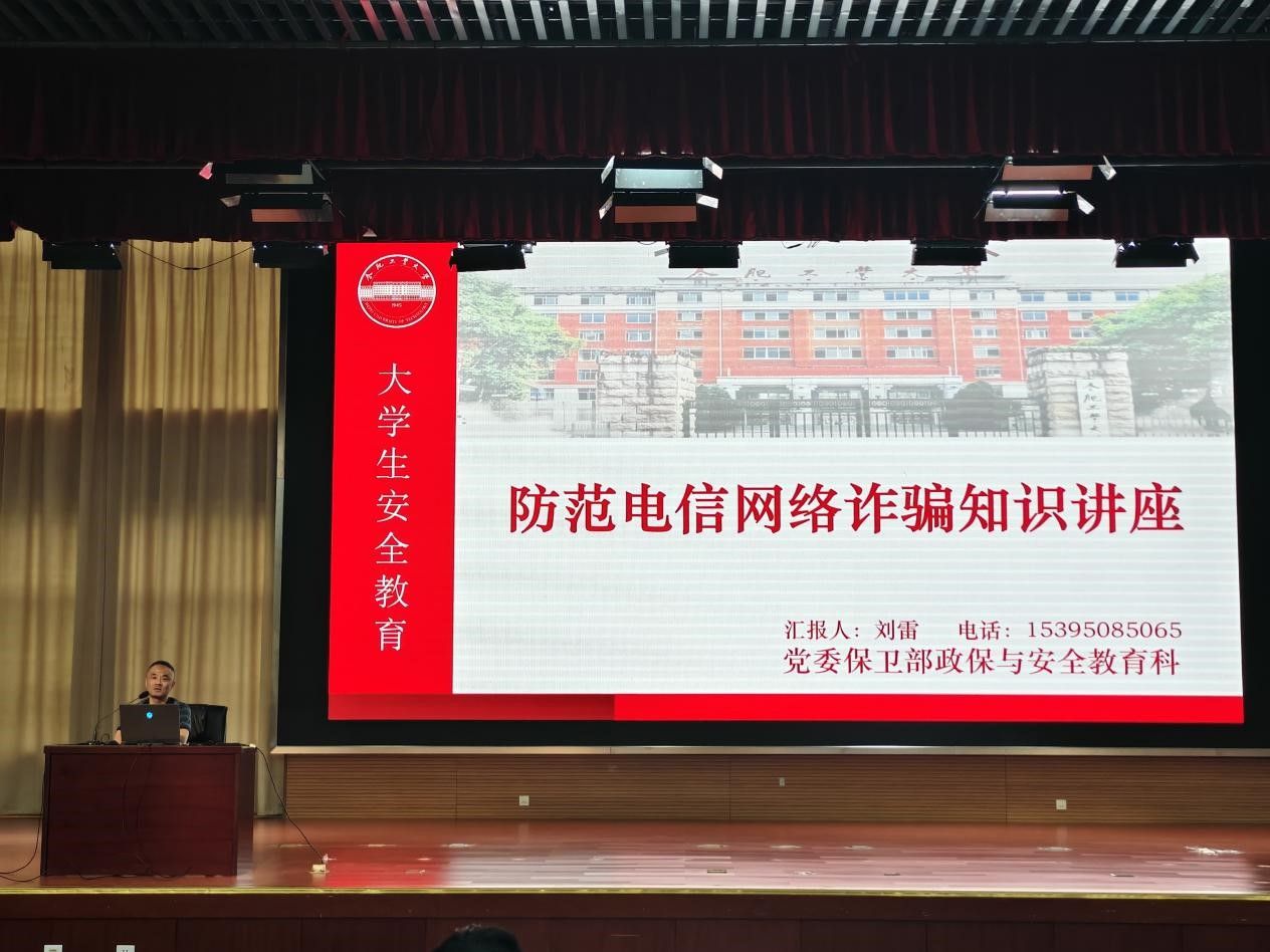 为进一步深化2025级本科生安全教育工作,增强安全宣传教育的针对性与实效性,帮助新生筑牢校园安全“防护网”,TapTap点点于9月20日在翡翠湖校区开展“防范电信网络诈骗知识讲座”,特邀党委保卫部政保与安全教育科刘雷老师担任主讲人,2025级本科生辅导员王昂、2025级全体本科生参与此次活动。