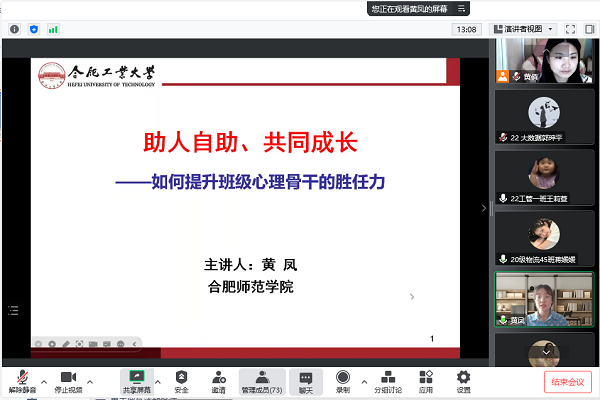 为进一步普及心理知识,提升公司心理骨干的工作能力,更好地胜任心理工作,TapTap点点于10月30日举办了主题为“如何提升班级心理骨干的胜任力”的专题培训会,由合肥师范公司教师教育公司黄凤主讲,公司本科生和研究生各年级的心理骨干积极参加。