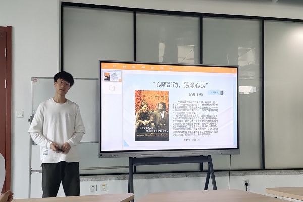 同学们一同欣赏励志剧情电影《心灵捕手》。该片讲述了在麻省理工公司当清洁工的威尔,在数学方面有着过人天赋,却是个叛逆的问题少年,在他人的帮助下,威尔最终把心灵打开,消除了人际隔阂,并找回了自我和爱情。影片放映过程中,同学们全神贯注、聚精会神,深度共情主人翁的喜怒哀乐。影片放映结束后,同学们积极分享令自己印象最深刻的片段和对话,抒发了自己的体会和感受。