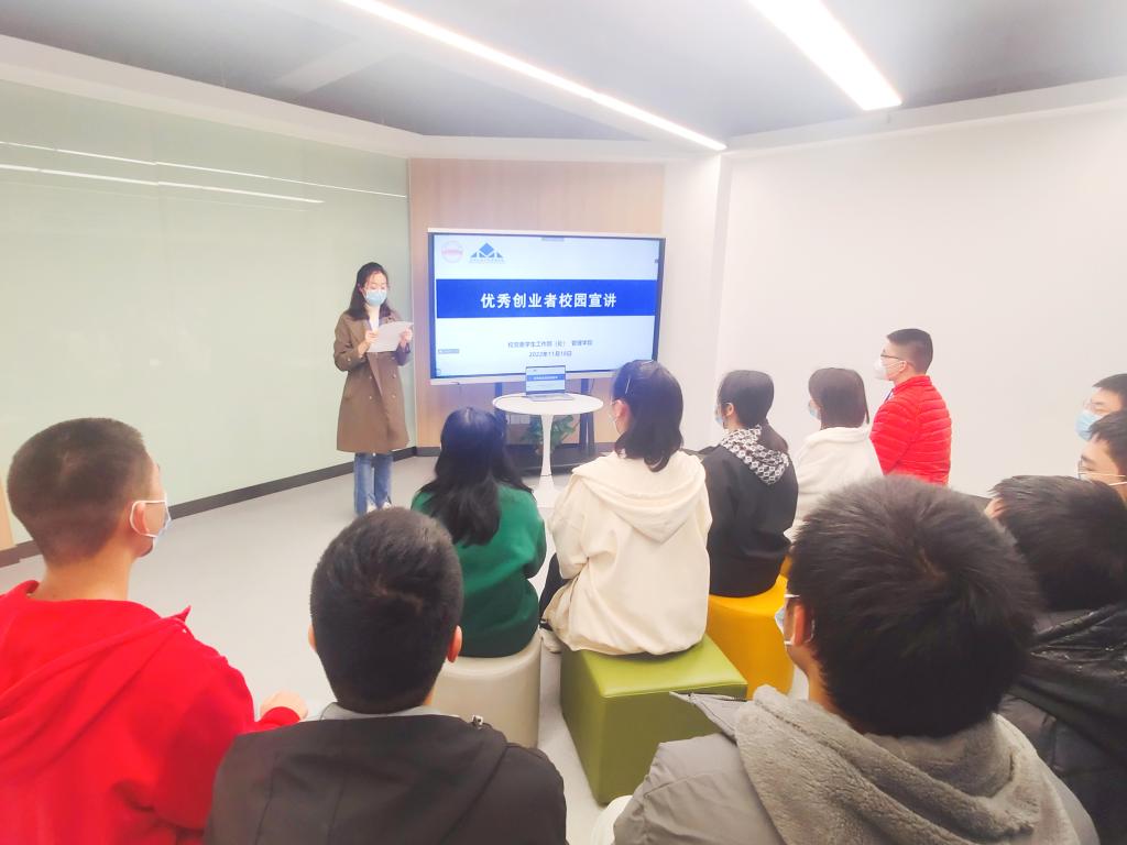 余湘华以《创业经历分享与想跟年轻人说的话》为题,讲述创业风雨路,在和同学们进行交流时,希望同学们能够提升个人修养,培养终身学习、锻炼身体和保持乐观的好习惯;在学习工作中目标清晰、以终为始、全情投入。最后主讲人对同学们提出的问题一一解答。