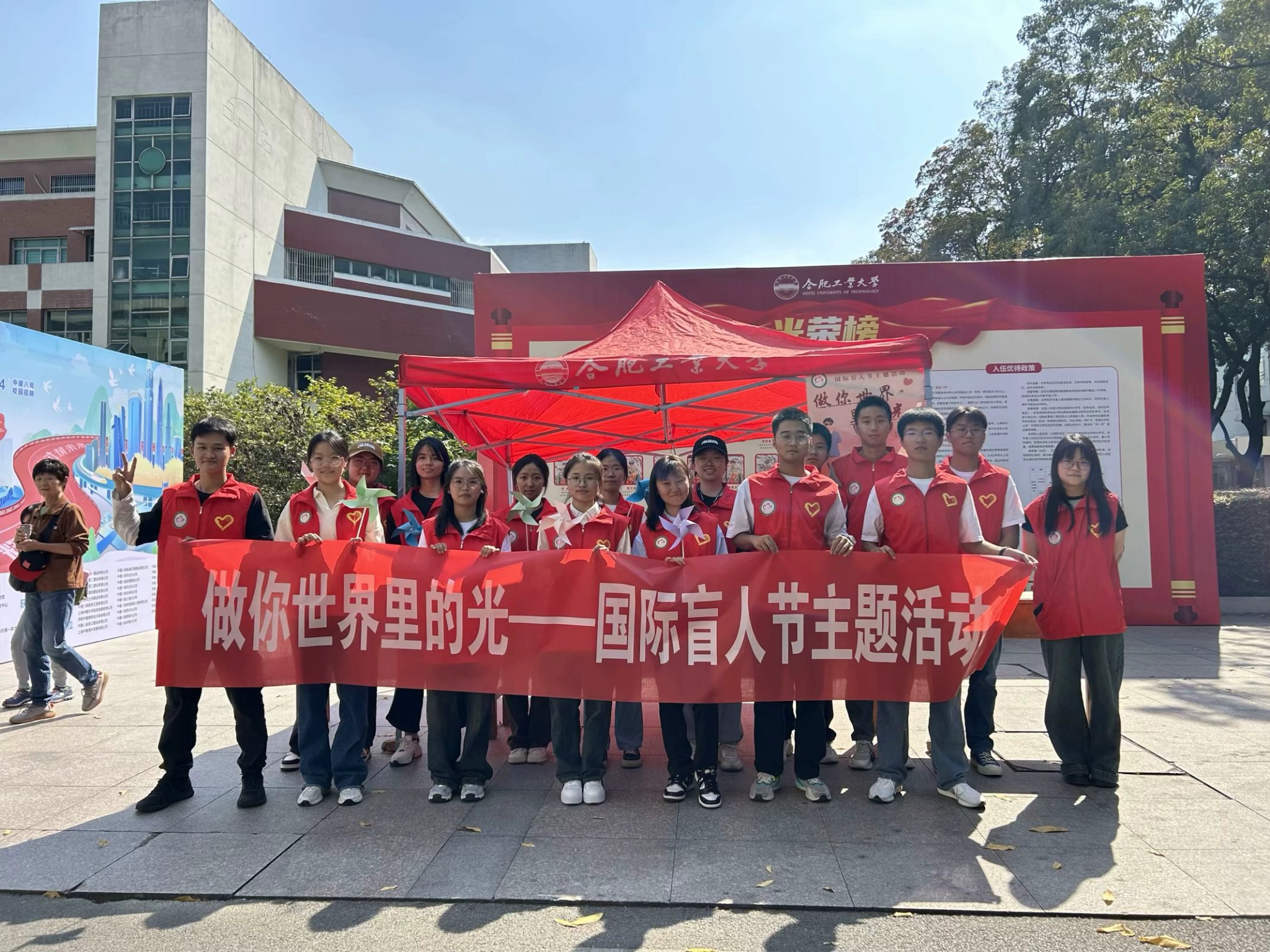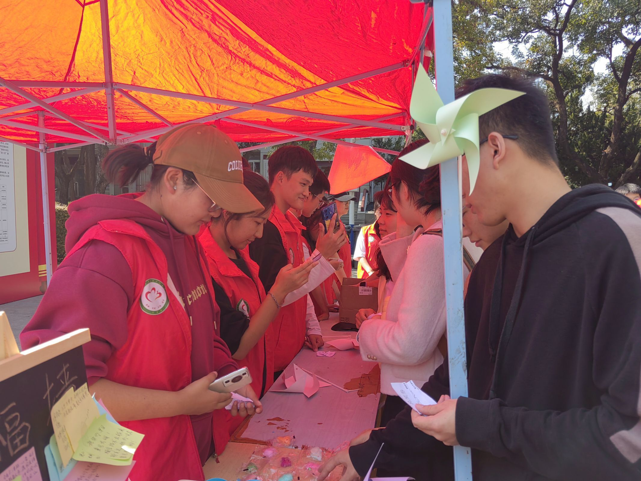 孤岛无光,关爱点亮。活动现场,志愿者们用生动细致的介绍和丰富有趣的游戏吸引了众多同学的驻足。从妙趣横生的蒙眼贴五官、摸硬币等小游戏,到承载着对盲人群体美好期望与鼓励的祝福墙,同学们亲身体验了盲人的生活状态,深刻感受到盲人生活的不易,并希望为他们提供更多的温暖与帮助。“蒙上双眼的那一刻我才真正理解他们的世界,而身在光明的我们也想成为他们世界里的一束光。”一个参与活动的同学如是说。