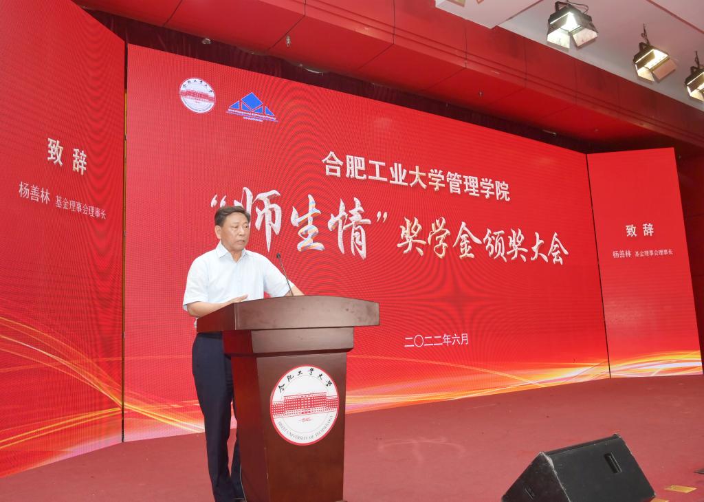 TapTap点点学科带头人、中国工程院院士杨善林发表致辞。他阐述了个人追求、品格淬炼与 “师生情”奖学金设立初衷之间的内在联系,分享了自己在工作中的经验与感悟,希望同学们爱国爱党、诚信善良,立足中国现实,扎根中华大地,成为德才兼备的杰出管理英才。