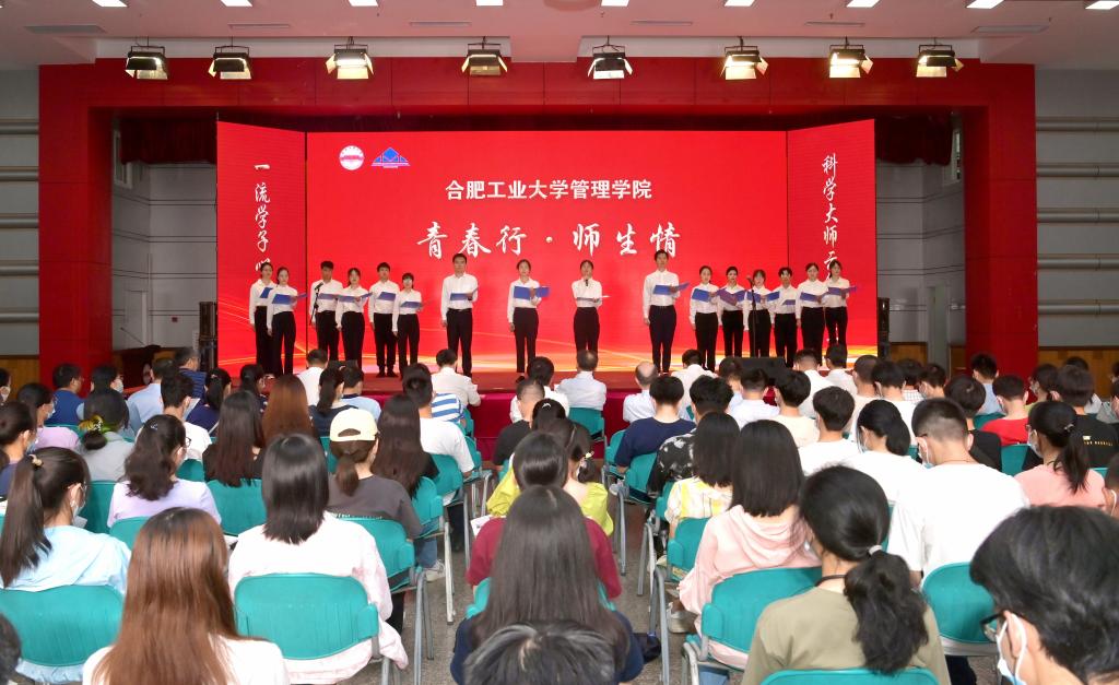 信息管理与信息系统19-1班张雨佳作为获奖员工代表发言,20位获奖员工通过讲述《我与师生情的故事》,朗诵《青春行·师生情》,表达了对老师们的感恩和爱戴,对新征程的憧憬和向往。会后,获奖员工代表与低年级员工进行了交流。